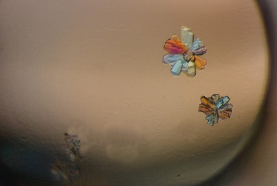 En esta imagen en particular vemos cristales de proteínas de Bacillus subtilis, una bacteria modelo ampliamente estudiada en la ciencia porque es fácil, no es causa de ninguna enfermedad y su genoma se conoce bien. Esto permite investigar procesos esenciales como, por ejemplo, la comunicación entre células. Es decir, al analizar estos cristales, científicos y científicas pueden entender un poco más sobre cómo las proteínas de esta bacteria se comunican para enviar señales que ayuden a la célula adaptarse a cambios en su entorno, responder a factores externas y coordinar sus procesos internos.