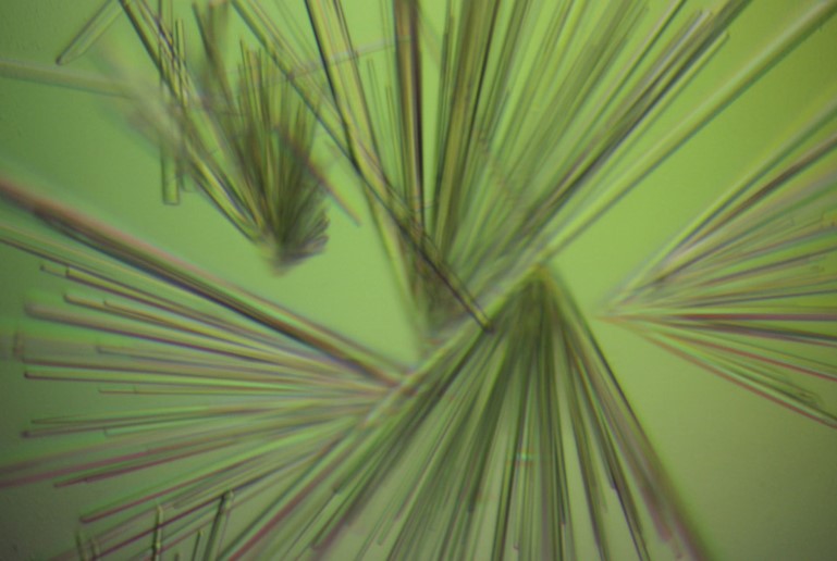 En particular, en esta imagen se ven cristales de proteínas de Bacillus subtilis, una bacteria modelo ampliamente estudiada en la ciencia porque no es causa de ninguna enfermedad y su genoma se conoce bien. Por ejemplo, en el Institut Pasteur de Montevideo, la imagen fue tomada por integrantes de la Unidad de Cristalografía de Proteínas, que utilizan a esta bacteria para generar conocimientos que sirvan para entender mejor diferentes enfermedades humanas y animales.